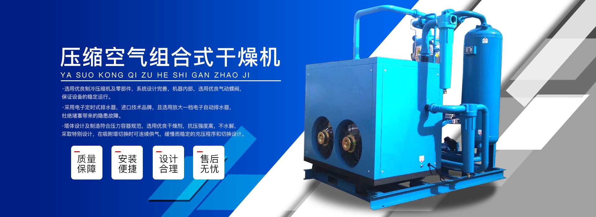 本公司系中國(guó)科學(xué)院、重鋼院、機(jī)電技術(shù)設(shè)計(jì)院、氣動(dòng)技術(shù)研究所等相關(guān)專家合作的具有雄厚技術(shù)力量的高科技實(shí)體,是一個(gè)專業(yè)從事各種氣體干燥凈化及分離純化設(shè)備研究開發(fā)及推廣應(yīng)用的高科技公司。公司積多年對(duì)壓縮空氣凈化設(shè)備的生產(chǎn)技術(shù)和銷售經(jīng)驗(yàn),并在消化吸收國(guó)外先進(jìn)技術(shù)的基礎(chǔ)上,結(jié)合國(guó)內(nèi)實(shí)際工況特點(diǎn),研制出適合國(guó)內(nèi)外廣大用戶的“滬盛”牌HSD系列壓縮空氣冷凍式干燥機(jī)、吸附式干燥機(jī)、后部冷卻器、預(yù)冷機(jī)組、工業(yè)用冷水機(jī)組和HF系列壓縮空氣高效精密過濾器(國(guó)產(chǎn)濾殼,美國(guó)漢克森HANKISON濾芯)等13大系列計(jì)300多種規(guī)格產(chǎn)品。并且新研發(fā)出燥式干器, 廣泛應(yīng)用于電力、冶金、電子、機(jī)械、石油、化工、汽車制造、紡織、化纖、輕工、造紙、橡膠、儀表、食品、空氣、卷煙、生物、醫(yī)藥、日化等行業(yè),在國(guó)內(nèi)同行業(yè)中一直處于領(lǐng)先地位。